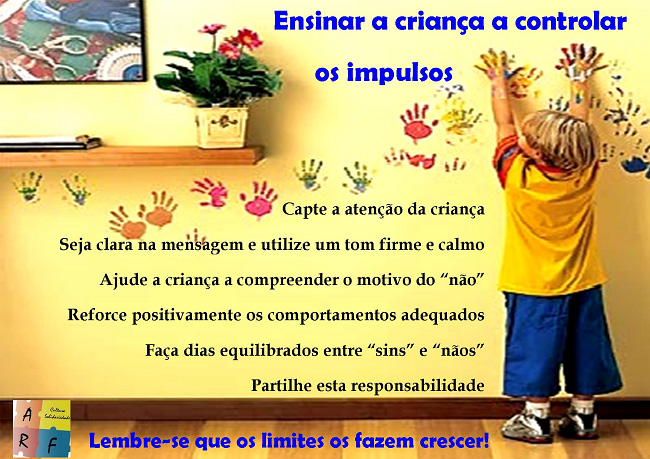 • Reforce positivamente: Acarinhe a criança e ajude-a a acreditar que pode aprender, a pouco e pouco a controlar-se, os reforços positivos são muito importantes ao longo deste processo.